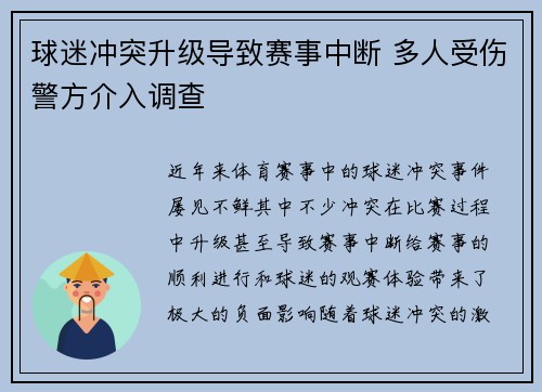 近年来,体育赛事中的球迷冲突事件屡见不鲜,其中不少冲突在比赛过程中升级,甚至导致赛事中断,给赛事的顺利进行和球迷的观赛体验带来了极大的负面影响。随着球迷冲突的激烈程度不断增加,导致赛事中断和多人受伤的...