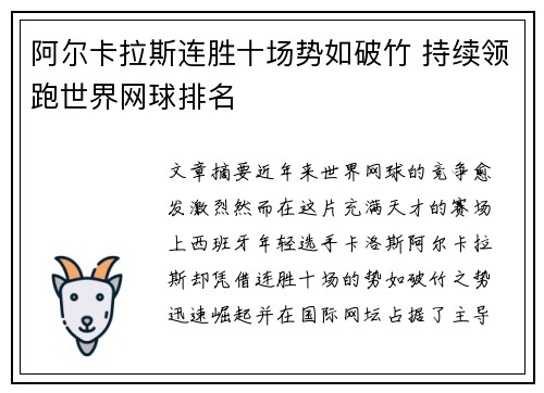文章摘要:近年来,世界网球的竞争愈发激烈,然而在这片充满天才的赛场上,西班牙年轻选手卡洛斯·阿尔卡拉斯却凭借连胜十场的势如破竹之势,迅速崛起,并在国际网坛占据了主导地位。作为新一代网球天才,他的表现不...
