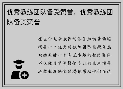 在当今竞争激烈的体育和健身领域,拥有一个优秀的教练团队无疑是成功的关键。一个真正卓越的教练团队不仅能为学员提供专业的技术指导,还能激发他们的潜能,帮助他们在运动领域取得突破性进展。这样的团队不仅具备深...