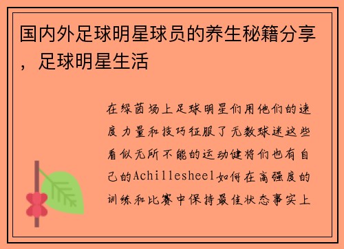 在绿茵场上,足球明星们用他们的速度、力量和技巧征服了无数球迷。这些看似无所不能的运动健将们,也有自己的Achilles'heel——如何在高强度的训练和比赛中保持最佳状态?事实上,无论是国外的C罗、梅...