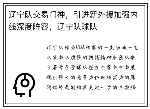 辽宁队作为CBA联赛的一支劲旅,一直以来都以顽强的拼搏精神和团队配合著称。尽管球队在多个赛季中都展现出强大的竞争力,但内线实力的薄弱始终是制约其更进一步的主要瓶颈。在过去的几个赛季中,辽宁队的内线球员...