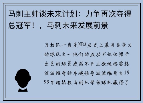 马刺队一直是NBA历史上最具竞争力的球队之一,他们的成功不仅仅源于出色的球员,更离不开主教练格雷格·波波维奇的卓越领导。波波维奇自1999年起执教马刺队,带领球队赢得了四座总冠军奖杯,并培养出了一代又...