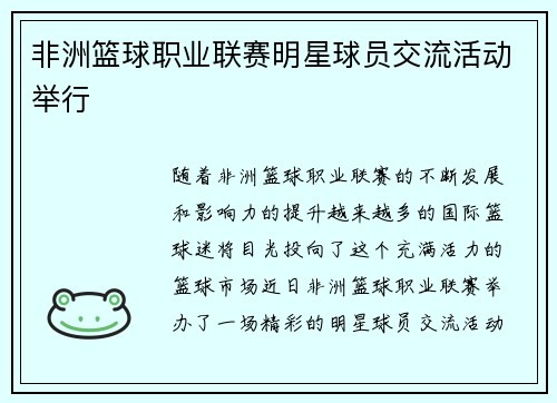随着非洲篮球职业联赛的不断发展和影响力的提升,越来越多的国际篮球迷将目光投向了这个充满活力的篮球市场。近日,非洲篮球职业联赛举办了一场精彩的明星球员交流活动,成为全球篮球界的一大亮点。本次活动汇聚了来...