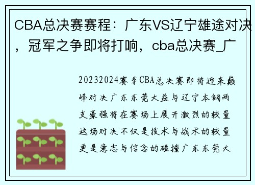2023-2024赛季CBA总决赛即将迎来巅峰对决,广东东莞大益与辽宁本钢两支豪强将在赛场上展开激烈的较量。这场对决不仅是技术与战术的较量,更是意志与信念的碰撞。广东东莞大益作为CBA历史上的总冠军球...