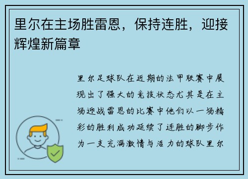 里尔足球队在近期的法甲联赛中展现出了强大的竞技状态,尤其是在主场迎战雷恩的比赛中,他们以一场精彩的胜利成功延续了连胜的脚步。作为一支充满激情与活力的球队,里尔一直以来都以稳定的战术执行和高效的进攻表现...