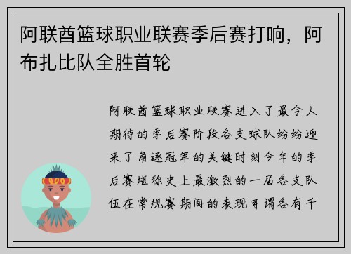 阿联酋篮球职业联赛进入了最令人期待的季后赛阶段,各支球队纷纷迎来了角逐冠军的关键时刻。今年的季后赛堪称史上最激烈的一届,各支队伍在常规赛期间的表现可谓各有千秋,而在这样的赛场上,实力与策略的碰撞,成为...